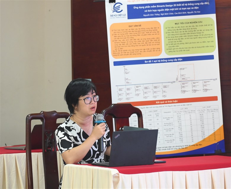 Nhiều đề tài được trình bày tại hội nghị thể hiện tính ứng dụng cao, bám sát thực tiễn trong lĩnh vực điện, năng lượng và tự động hóa. Các nghiên cứu tập trung vào mô phỏng, phân tích và tối ưu vận hành hệ thống điện, tích hợp hiệu quả nguồn năng lượng tái tạo như điện mặt trời vào lưới điện, cũng như nâng cao độ tin cậy và ổn định hệ thống thông qua các giải pháp bảo vệ, điều khiển và giám sát hiện đại. Việc ứng dụng các phần mềm mô phỏng chuyên dụng như OpenDSS, ETAP hay công nghệ PLC trong các đề tài cho thấy sự chủ động tiếp cận công nghệ mới và định hướng rõ ràng về chuyển đổi số trong lĩnh vực kỹ thuật điện.