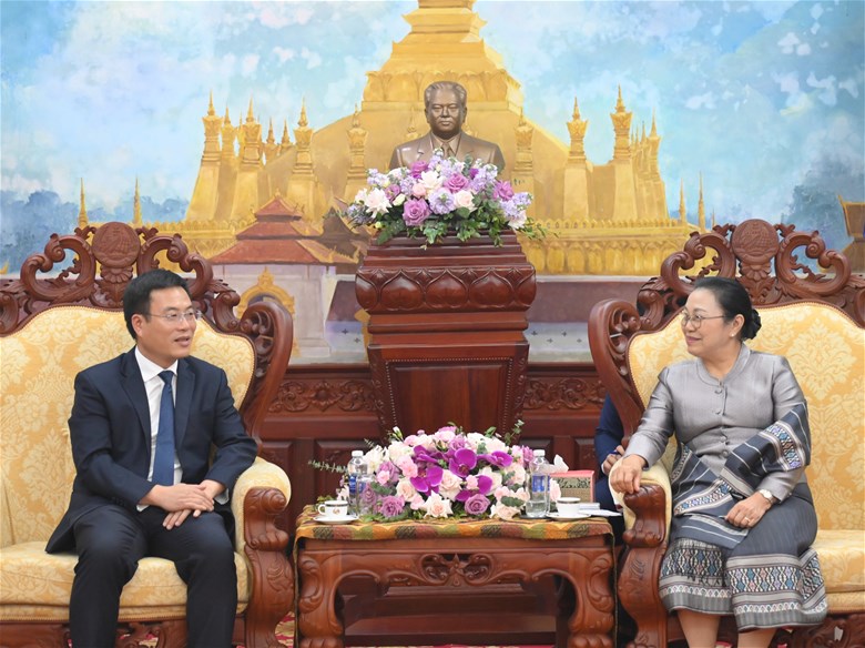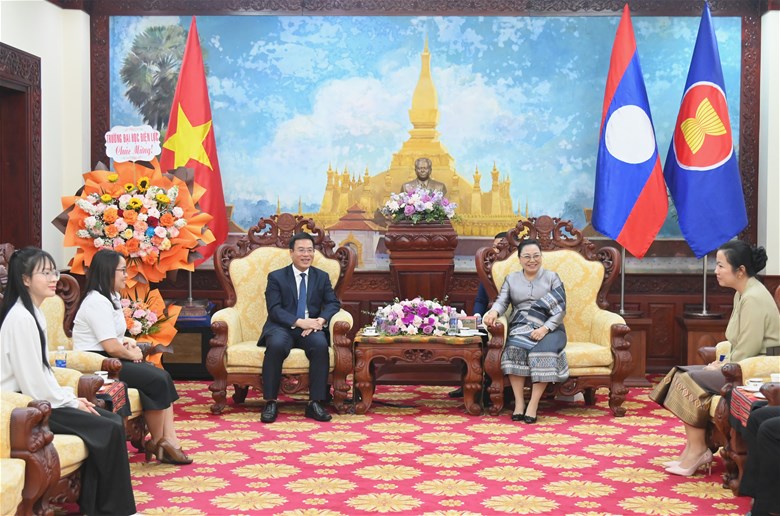 PGS. TS Nguyễn Lê Cường trao đổi và gửi lời chúc mừng tới bà Khamphao Ernthavanh.