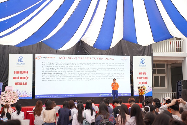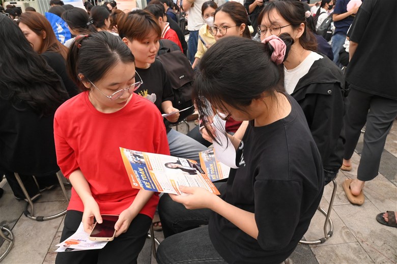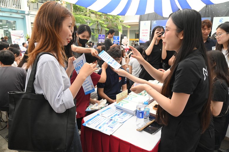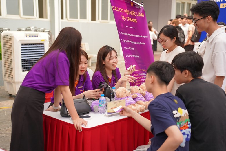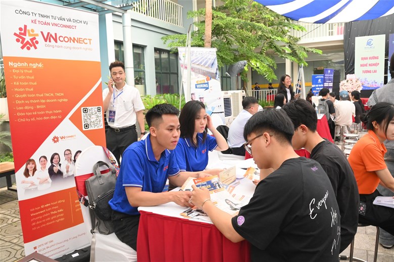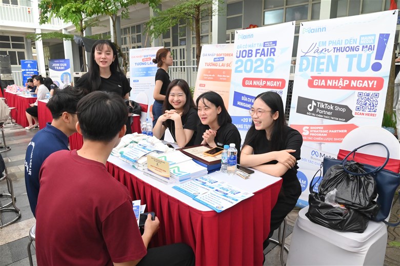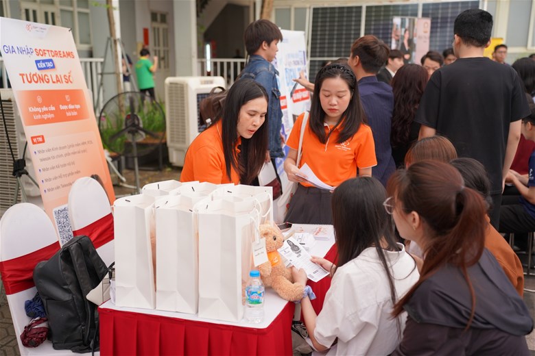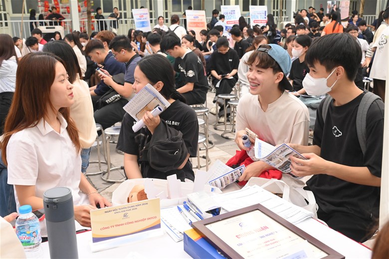 Điểm đáng giá nhất của chương trình không nằm ở những bài phát biểu, mà ở chính hành động diễn ra ngay sau đó. Khu vực tuyển dụng nhanh chóng trở nên nhộn nhịp khi sinh viên chủ động tiếp cận doanh nghiệp, nộp hồ sơ, trao đổi trực tiếp và tìm kiếm cơ hội cho riêng mình. Những cuộc gặp gỡ ngắn, những cái bắt tay đầu tiên, nhưng lại có thể là bước khởi đầu cho cả một hành trình nghề nghiệp phía trước.