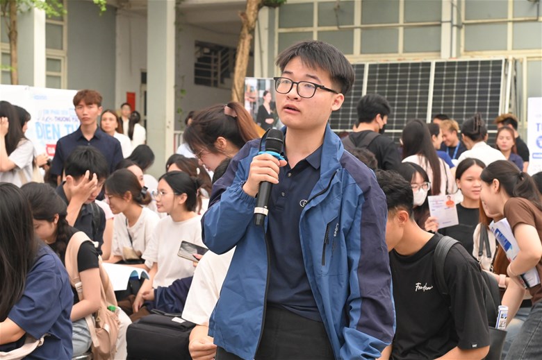 Không khí chương trình trở nên “nóng” hơn bao giờ hết tại phiên tọa đàm khi sinh viên liên tục đặt câu hỏi, trao đổi trực tiếp với doanh nghiệp và các thầy cô. Những chia sẻ đa chiều đã giúp làm rõ khoảng cách giữa đào tạo và thực tiễn, đồng thời mở ra hướng đi cụ thể cho sinh viên trong việc phát triển bản thân và định vị nghề nghiệp.