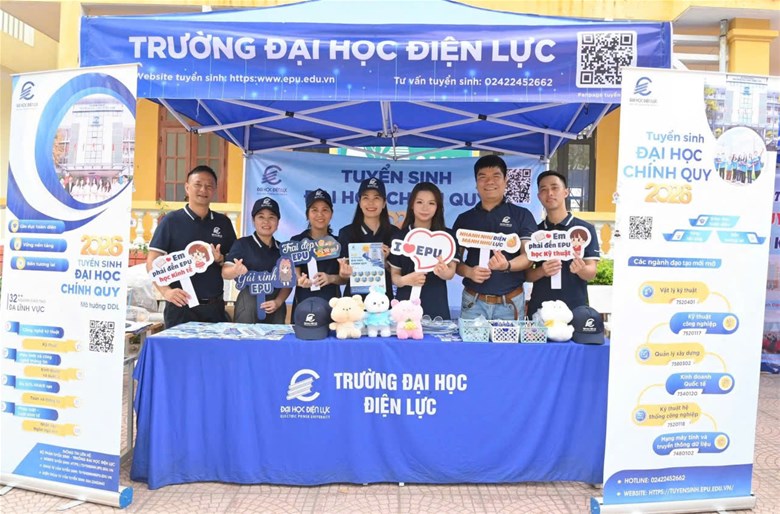 Ngày 24/3/2026, Trường Đại học Điện lực tham gia tư vấn tuyển sinh tại Trường THPT Lục Nam và Trường THPT Lý Nhân Tông (Bắc Ninh), nhằm hỗ trợ học sinh lớp 12 tiếp cận thông tin tuyển sinh và định hướng lựa chọn ngành học phù hợp.