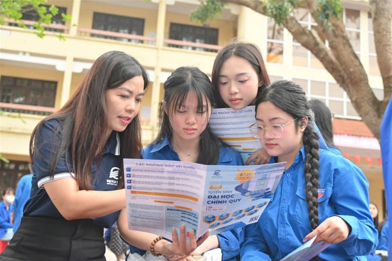 Trong phần trao đổi, học sinh hai trường đã trực tiếp đặt câu hỏi xoay quanh tổ hợp xét tuyển, điều kiện đăng ký, cũng như định hướng lựa chọn ngành học phù hợp với năng lực và xu hướng thị trường lao động. Các thắc mắc được giải đáp cụ thể, góp phần giúp học sinh hiểu rõ hơn về các phương án xét tuyển và cơ hội phát triển sau tốt nghiệp.
