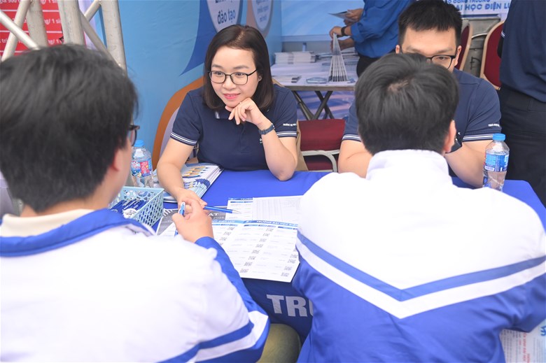 Tại gian tư vấn của Trường Đại học Điện lực, các giảng viên đã trực tiếp trao đổi, giải đáp những nội dung được học sinh và phụ huynh quan tâm như phương thức xét tuyển đại học dự kiến năm 2026, các ngành đào tạo thế mạnh của Nhà trường, cơ hội việc làm và định hướng nghề nghiệp sau khi tốt nghiệp.