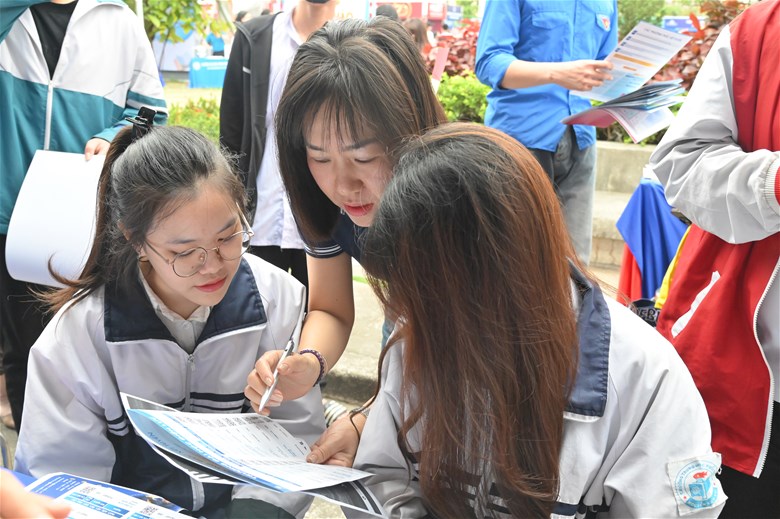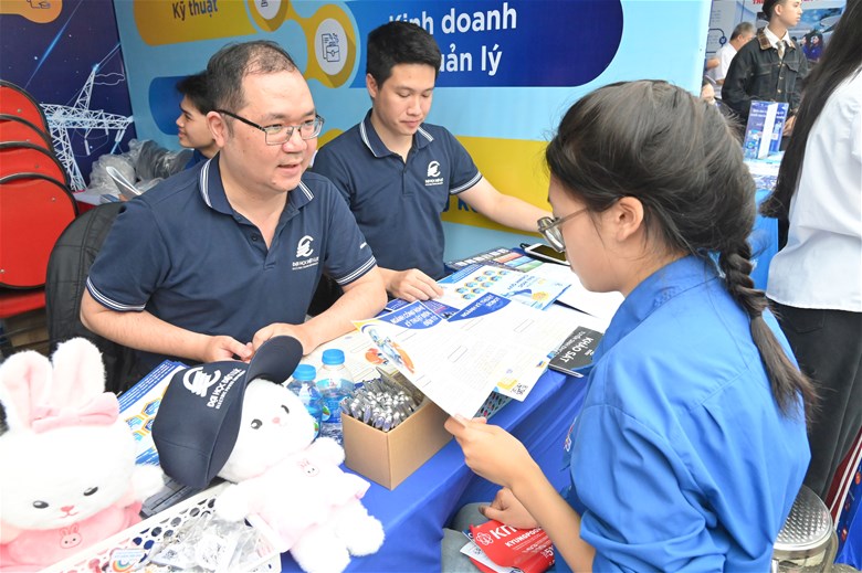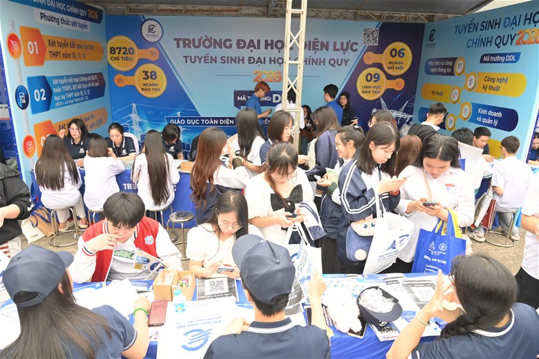 Tại chương trình, gian tư vấn của Trường Đại học Điện lực nhận được nhiều sự quan tâm từ các em học sinh. Không chỉ cung cấp thông tin về các ngành đào tạo và phương thức xét tuyển năm 2026, đội ngũ cán bộ, giảng viên và sinh viên Nhà trường còn trực tiếp trao đổi, giải đáp những băn khoăn liên quan đến định hướng nghề nghiệp, xu hướng phát triển của thị trường lao động cũng như môi trường học tập tại Trường. Những chia sẻ thực tế, gần gũi đã góp phần giúp học sinh có thêm góc nhìn rõ ràng và thực tế hơn trong việc lựa chọn ngành học phù hợp.
