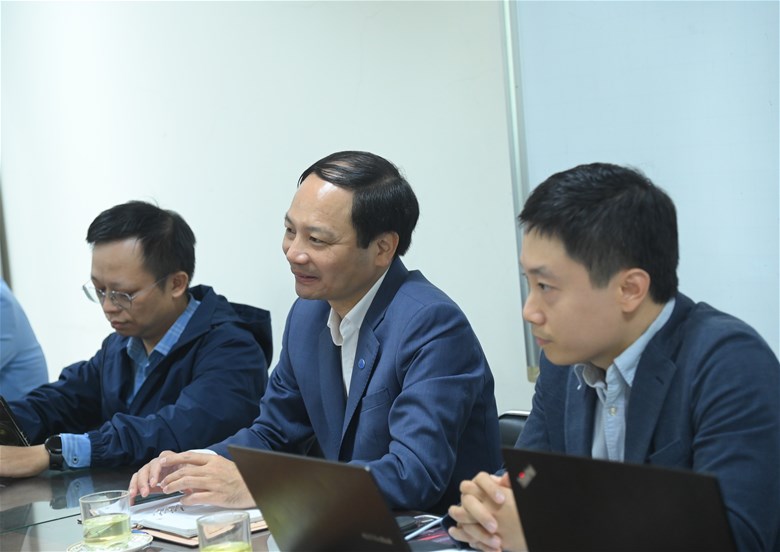 Giáo sư Hứa Trần Giám trao đổi tại buổi làm việc.