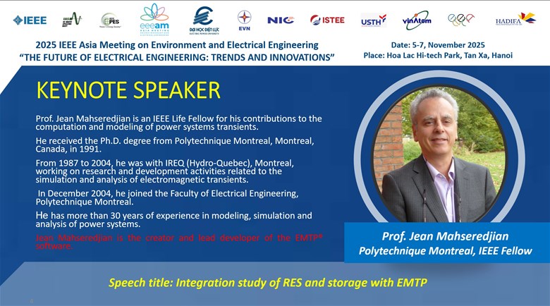 Tại EEE.AM 2025, Giáo sư Jean Mahseredjian sẽ trình bày bài phát biểu với chủ đề: Integration study of RES and storage with EMTP” (Nghiên cứu tích hợp nguồn năng lượng tái tạo và lưu trữ bằng EMTP).