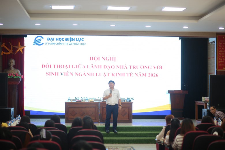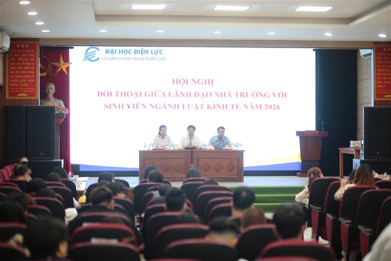 Ngày 24/04/2026, tại Hội trường Cơ sở 3 – Trường Đại học Điện lực diễn ra Hội nghị đối thoại giữa Lãnh đạo Nhà trường và sinh viên Khoa Lý luận chính trị & Pháp luật, với sự tham gia của các phòng ban, giảng viên và đông đảo sinh viên. Hội nghị nhằm tăng cường kết nối, lắng nghe và giải đáp kịp thời những tâm tư, nguyện vọng của sinh viên.