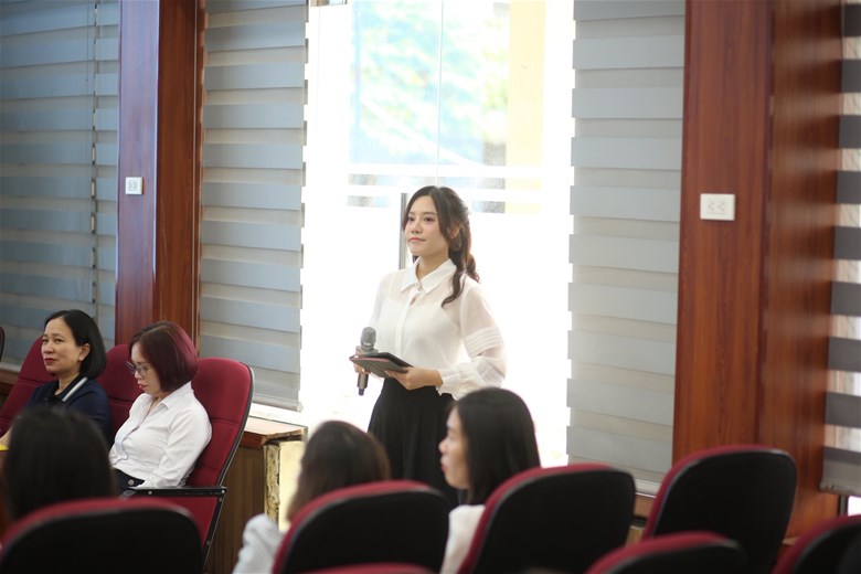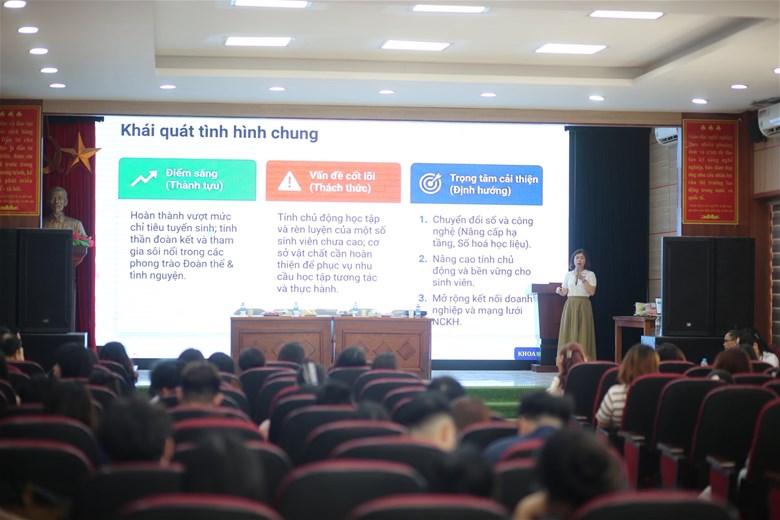 Tại Hội nghị, ThS. Phạm Thị Thu Thủy đã trình bày báo cáo tổng quan về tình hình học tập, hoạt động nổi bật của sinh viên khóa D20 ngành Luật Kinh tế, đồng thời định hướng nâng cao chất lượng đào tạo, chú trọng kỹ năng thực hành và tư duy phản biện.