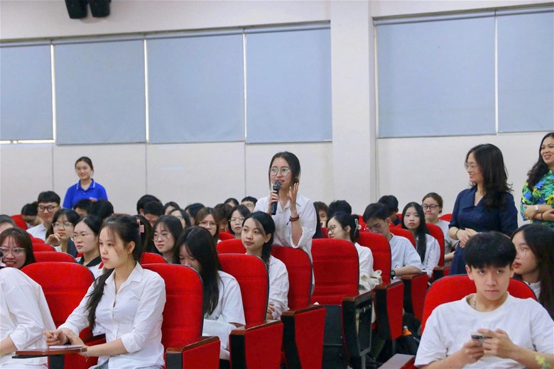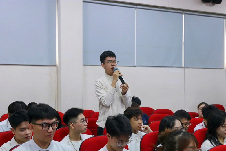 Điểm nhấn của chương trình là phần tọa đàm, đối thoại trực tiếp giữa Lãnh đạo Nhà trường và sinh viên, nơi các câu hỏi, ý kiến được trao đổi thẳng thắn xoay quanh nhiều nội dung như: chương trình đào tạo, đăng ký học phần, công tác thi cử, chính sách học bổng – hỗ trợ sinh viên, cơ hội thực tập – việc làm, nghiên cứu khoa học, học liệu và cơ sở vật chất. Những vấn đề được đặt ra không chỉ phản ánh thực tiễn mà còn thể hiện tinh thần chủ động, trách nhiệm của sinh viên đối với quá trình học tập.