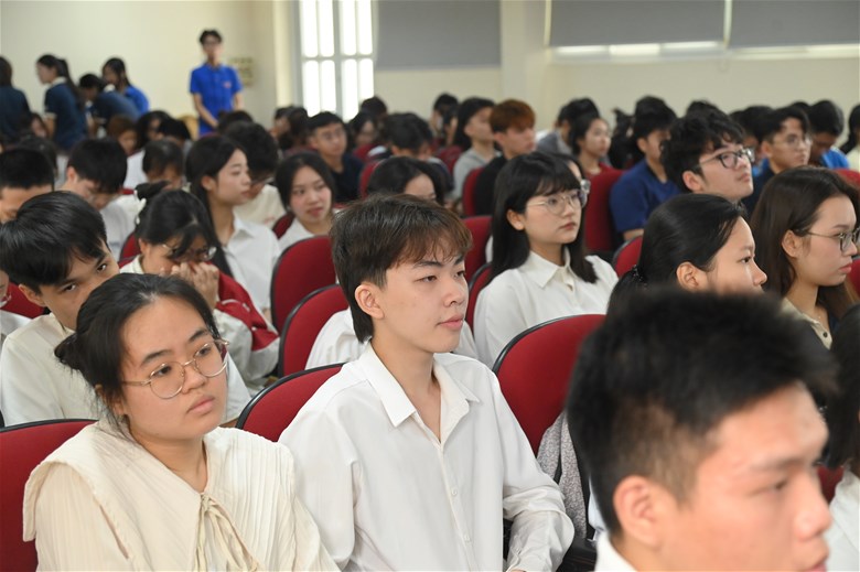 Tiếp nối chương trình, sinh viên đã được lắng nghe thông tin về các chủ trương, định hướng phát triển của Nhà trường và Khoa trong thời gian tới. Những nội dung này góp phần giúp sinh viên hiểu rõ hơn về mục tiêu đào tạo cũng như định hướng học tập, rèn luyện của bản thân.