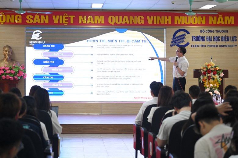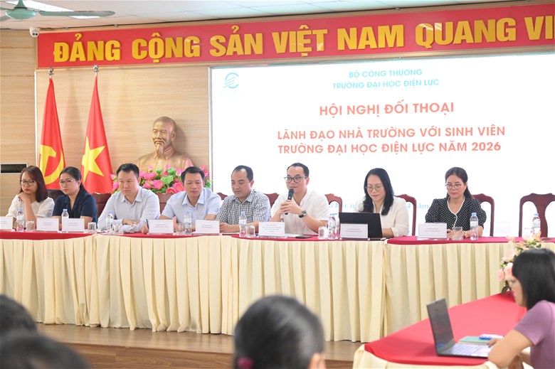 Sáng 15/4/2026, tại Hội trường M, Trường Đại học Điện lực tổ chức Hội nghị đối thoại giữa lãnh đạo Nhà trường với sinh viên Khoa Quản lý Công nghiệp và Năng lượng.