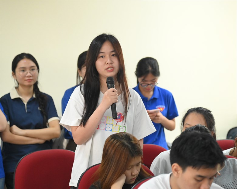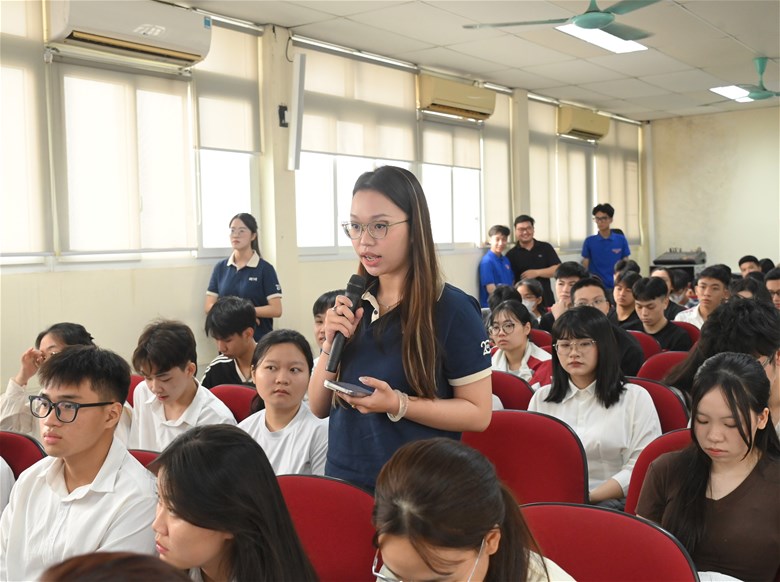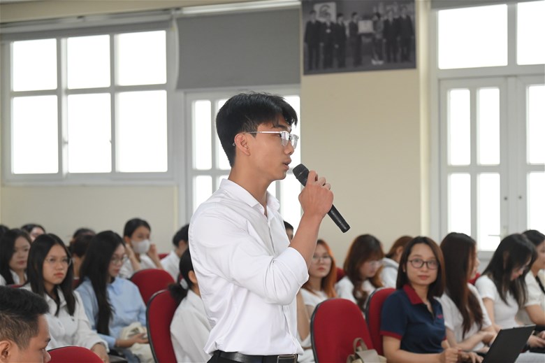Trong khuôn khổ hội nghị, phiên hỏi – đáp diễn ra sôi nổi với nhiều ý kiến, câu hỏi thiết thực từ sinh viên. Nội dung trao đổi tập trung vào các vấn đề như: chương trình đào tạo; quy trình chấm thi và phúc khảo bài thi; hoạt động thực tập, cơ hội việc làm; cùng các điều kiện bảo đảm phục vụ học tập và rèn luyện của sinh viên.