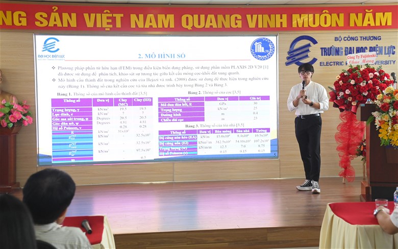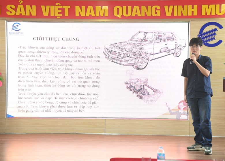 Trong khuôn khổ hội nghị, các nhóm sinh viên đã trình bày nhiều đề tài nghiên cứu tâm huyết và sáng tạo, tập trung vào các hướng ứng dụng trong cơ khí, ô tô, xây dựng và công nghệ kỹ thuật hiện đại. Những phần trình bày sôi nổi, mang tính thực tiễn cao đã nhận được sự quan tâm, trao đổi và đóng góp ý kiến quý báu từ các chuyên gia, doanh nghiệp và giảng viên.