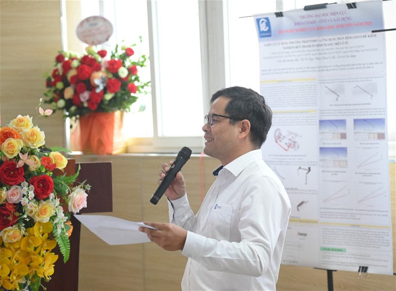 Phát biểu khai mạc hội nghị, TS. Bùi Văn Bình – Trưởng Khoa Cơ khí, Ô tô và Xây dựng thay mặt Khoa gửi lời cảm ơn sâu sắc tới các thầy cô, chuyên gia và đại biểu đã dành thời gian tham dự, đồng hành cùng hoạt động nghiên cứu khoa học của sinh viên. Thầy cho biết, 16 báo cáo được trình bày tại hội nghị là những công trình tiêu biểu, có chất lượng, thể hiện tinh thần học hỏi, sáng tạo và niềm đam mê nghiên cứu của sinh viên. Thầy hy vọng những kết quả này sẽ trở thành nguồn động lực mạnh mẽ, khuyến khích sinh viên tiếp tục đào sâu nghiên cứu và phát triển ý tưởng sáng tạo trong thời gian tới.