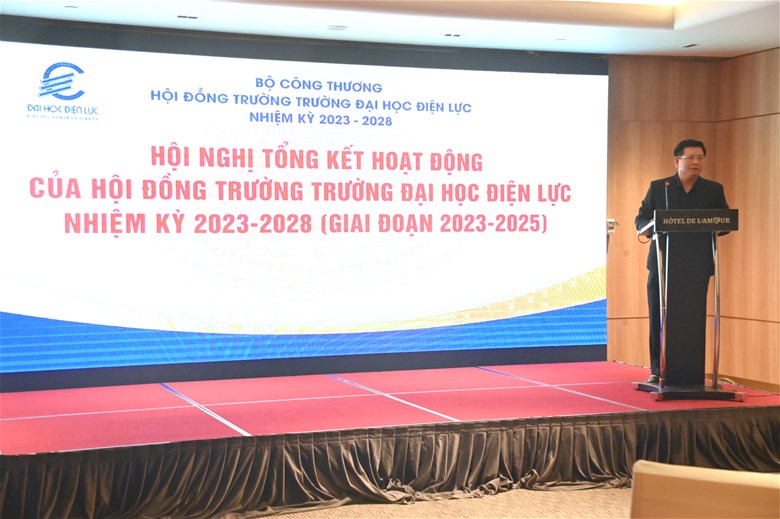 Tại hội nghị, các đại biểu đã được nghe Báo cáo tổng kết hoạt động của Hội đồng trường Trường Đại học Điện lực nhiệm kỳ 2021-2026 (giai đoạn 2023-2025).
