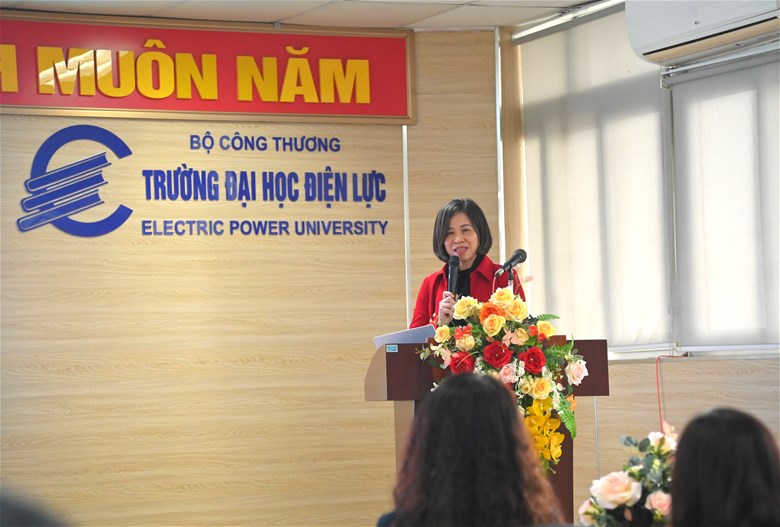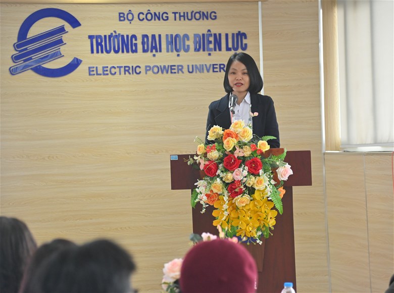 Bà Hoàng Thị Kim Oanh - Trưởng khoa Ngoại ngữ, Trường Đại học Điện lực phát biểu khai mạc hội thảo.
