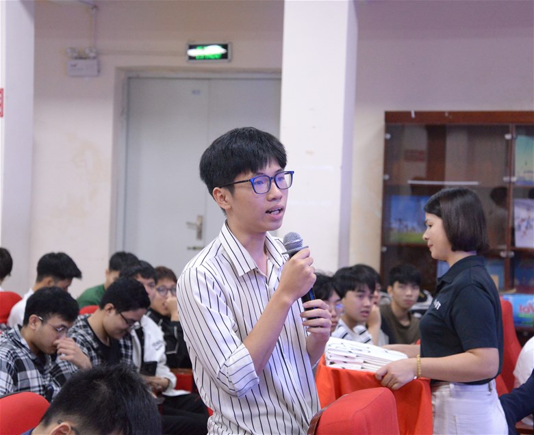 Phần giao lưu hỏi đáp trực tiếp giữa sinh viên và đại diện afterFIT đã diễn ra sôi nổi với nhiều câu hỏi thiết thực xoay quanh: Điều kiện tham gia chương trình; Cơ hội việc làm sau tốt nghiệp; Thu nhập và chế độ đãi ngộ; Yêu cầu tiếng Nhật và chuyên môn kỹ thuật; Kinh nghiệm thích nghi với môi trường quốc tế.