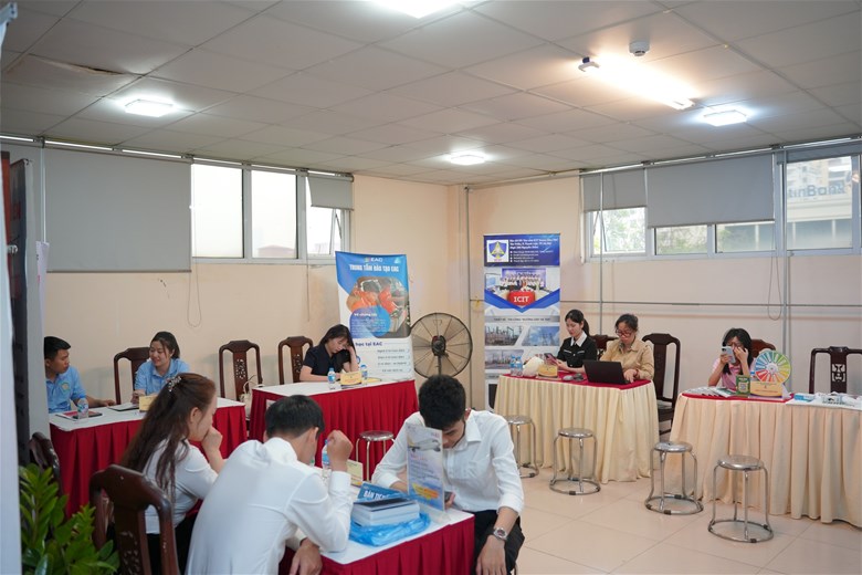 Ngay sau hội thảo, các hoạt động kết nối tuyển dụng trực tiếp đã diễn ra sôi nổi. Sinh viên được gặp gỡ, trao đổi với doanh nghiệp, nộp hồ sơ ứng tuyển và nhận tư vấn nghề nghiệp. Đây là bước chuyển quan trọng giúp sinh viên biến cơ hội thành hành động cụ thể, từng bước tiếp cận thị trường lao động.