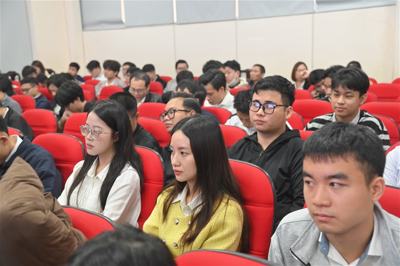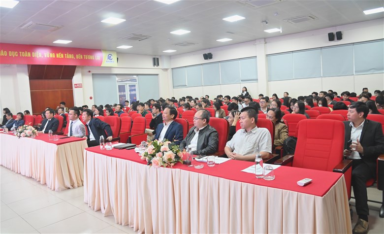Tham dự hội nghị có PGS.TS Nguyễn Lê Cường - Phó Hiệu trưởng; TS. Chu Việt Thức - Trưởng phòng Quản lý Khoa học và Hợp tác Quốc tế; cùng đại diện lãnh đạo các khoa, phòng, trung tâm và đông đảo sinh viên quan tâm đến hoạt động nghiên cứu khoa học.