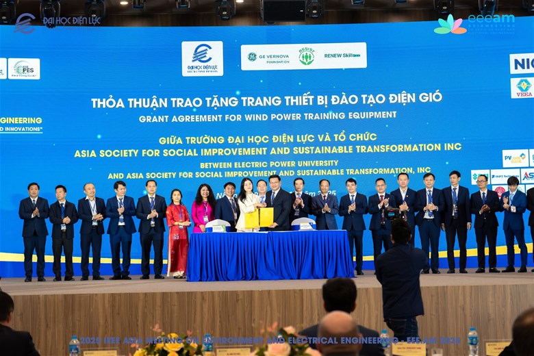 Thỏa thuận trao tặng trang thiết bị đào tạo điện gió giữa Trường Đại học Điện lực và tổ chức Asia Society for Social Improvement and Sustainable Transformation Inc (ASSIST).