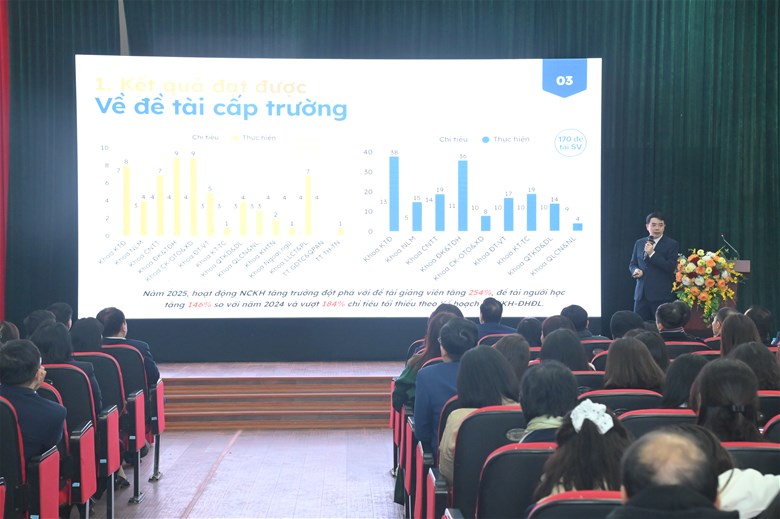 Đây là dịp để Nhà trường nhìn nhận, đánh giá toàn diện kết quả đạt được, đồng thời xác định phương hướng, nhiệm vụ trọng tâm trong năm 2026, góp phần nâng cao hiệu quả các hoạt động nghiên cứu khoa học, hợp tác quốc tế và hợp tác doanh nghiệp trong thời gian tới.