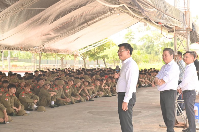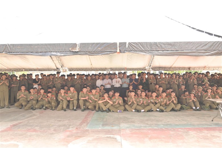 Trong buổi gặp gỡ, PGS.TS Đinh Văn Châu đã dành thời gian lắng nghe những chia sẻ, tâm tư của sinh viên về điều kiện học tập, sinh hoạt, cũng như những trải nghiệm, khó khăn trong quá trình rèn luyện tại cơ sở 2. PGS.TS Đinh Văn Châu khẳng định, môn GDQP&AN không chỉ cung cấp kiến thức cơ bản về quốc phòng, an ninh mà còn giúp rèn luyện tinh thần kỷ luật, kỹ năng làm việc tập thể, ý thức trách nhiệm và lòng yêu nước – những phẩm chất quan trọng trong hành trình trưởng thành của mỗi sinh viên.