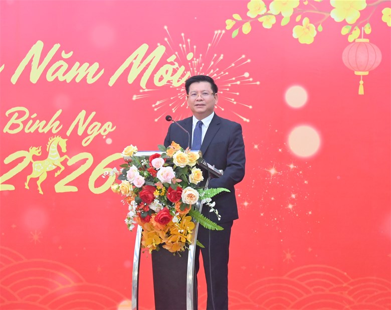 Tại buổi gặp mặt, PGS.TS Đinh Văn Châu gửi lời chúc mừng đầu xuân tốt đẹp nhất tới toàn thể viên chức, người lao động, học viên và sinh viên trong trường.