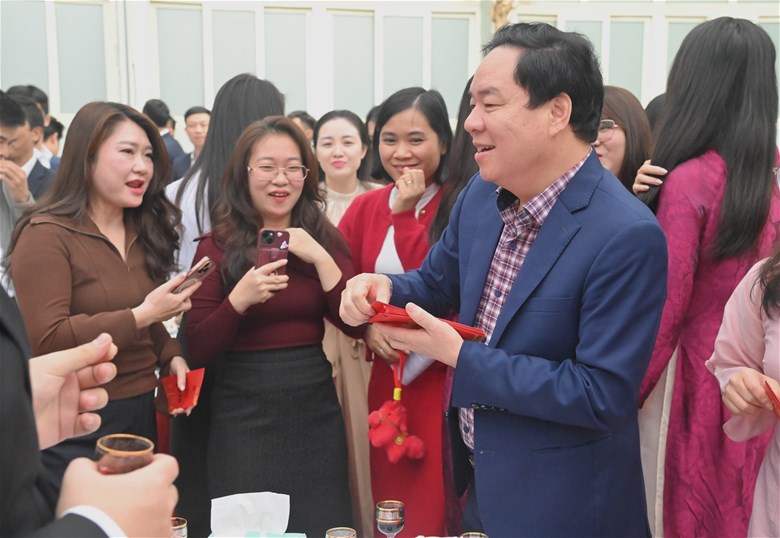 Trong không khí tươi vui, phấn khởi của Xuân mới, tập thể Nhà trường cùng trao nhau những lời chúc Tết ý nghĩa tạo nên bầu không khí thân mật, gắn kết.