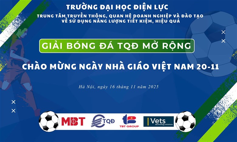 Vào sáng chủ nhật, ngày 16/11/2025 tại Sân bóng Cổ nhuế 2 – Cổ Nhuế 2, Cổ Nhuế, Bắc Từ Liêm, Hà Nội sẽ chứng kiến loạt trận đấu đầy kịch tính giữa đội tuyển Trung tâm Truyền thông, Quan hệ Doanh nghiệp, Đào tạo và sử dụng năng lượng tiết kiêm và hiệu quả (TQĐ) - Trường Đại học Điện lực, Công ty Cổ phần Quốc tế TBT Group, Công ty Cổ phần Thiết bị Điện MBT, Công ty Cổ phần Giải pháp Công nghệ Việt Nam (VETS).
