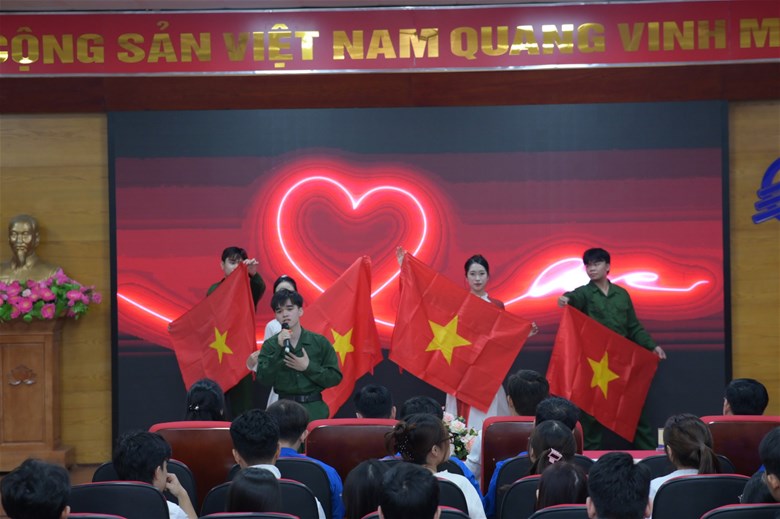 Dự chương trình có PGS.TS. Đinh Văn Châu – Hiệu trưởng Nhà trường, TS. Đặng Thành Chung – Trưởng khoa Lý luận chính trị, ThS. Nguyễn Vân Anh – Phó Trưởng phòng CTSV, Bí thư Đoàn Thanh niên, cùng sự hiện diện đặc biệt của diễn viên Nguyễn Phương Nam – người đảm nhiệm vai anh Tạ trong bộ phim “Mưa đỏ”.