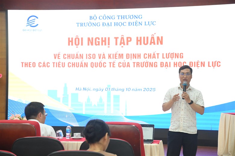 Nhằm cụ thể hóa Chiến lược phát triển Trường Đại học Điện lực đến năm 2030, ngày 01/10/2025, Nhà trường tổ chức chương trình tập huấn về tiêu chuẩn ISO và kiểm định chất lượng theo các tiêu chuẩn quốc tế tại Hội trường B1. Chương trình có sự tham gia của toàn thể cán bộ, giảng viên và người lao động trong Trường.