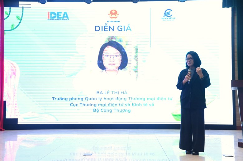 Diễn giả Lê Thị Hà – Trưởng phòng Quản lý hoạt động thương mại điện tử, Cục Thương mại điện tử và Kinh tế số (Bộ Công Thương)
