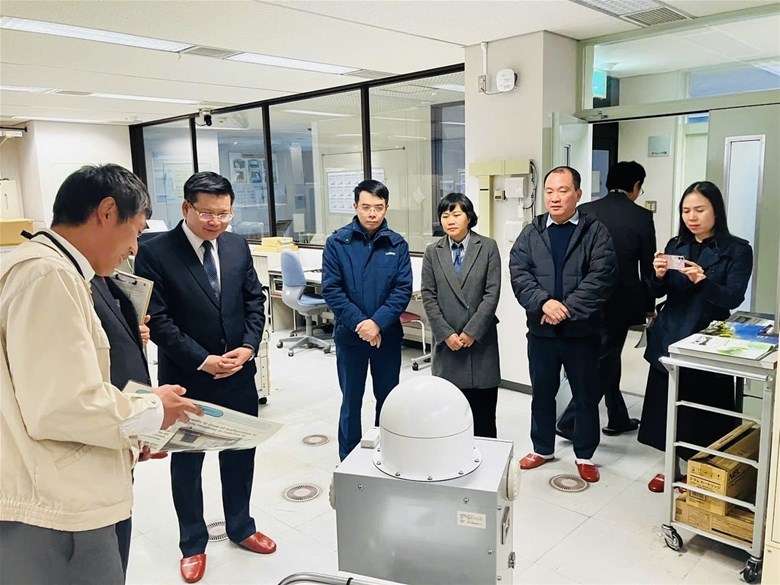 Tại Trung tâm Giám sát Môi trường Hạt nhân Tỉnh Fukui, Đoàn được giới thiệu về hệ thống quan trắc liên tục chất lượng môi trường và các thông số bức xạ trong khu vực, nhằm đảm bảo an toàn cho cộng đồng và phát hiện sớm các sự cố môi trường nếu xảy ra.