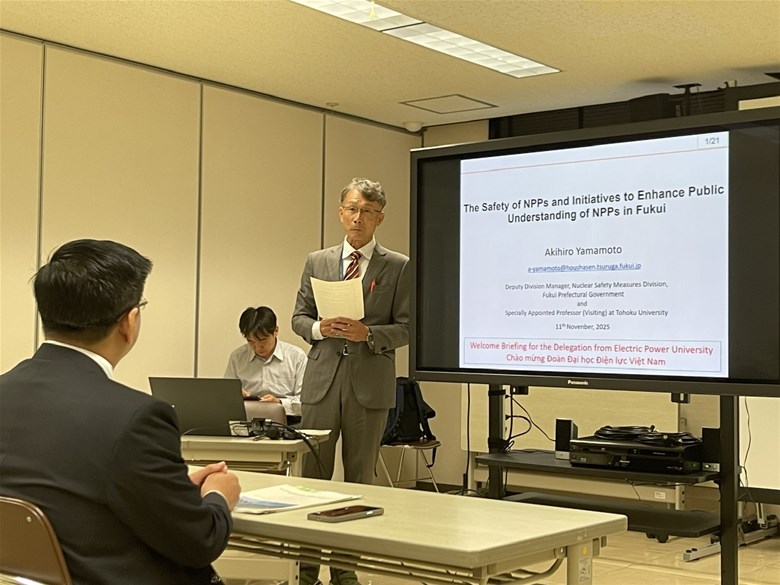 Ngày 11/11/2025, trong khuôn khổ chuyến công tác tại Nhật Bản, đoàn công tác Trường Đại học Điện lực do PGS.TS. Đinh Văn Châu – Phó Bí thư Đảng ủy, Hiệu trưởng Nhà trường – làm trưởng đoàn đã đến thăm và làm việc tại các trung tâm nghiên cứu, đào tạo và giám sát môi trường trong lĩnh vực năng lượng hạt nhân tại tỉnh Fukui.
