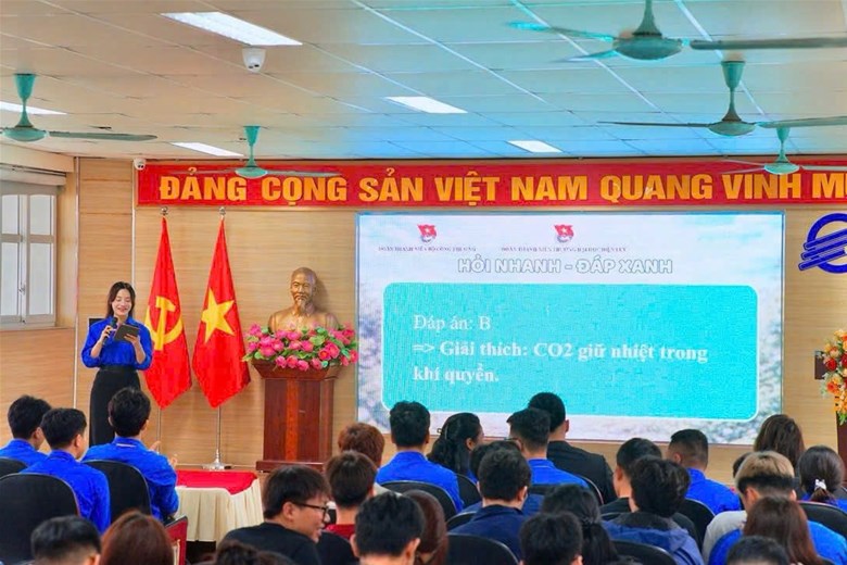 Ngay sau lễ phát động, chuỗi hoạt động hưởng ứng đã diễn ra sôi nổi. Nổi bật là phần giao lưu “Hỏi nhanh – Đáp xanh”, nơi sinh viên tham gia trả lời các câu hỏi liên quan đến môi trường, qua đó tiếp cận kiến thức một cách trực quan, sinh động. Hoạt động không chỉ tạo không khí hào hứng mà còn góp phần nâng cao nhận thức về các vấn đề môi trường đang đặt ra hiện nay.