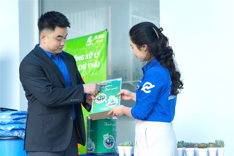 Bên cạnh đó, chương trình “Đổi pin cũ – Nhận cây xanh” tại sảnh B1 thu hút đông đảo sinh viên tham gia. Những viên pin đã qua sử dụng – một loại rác thải nguy hại – được thu gom, đổi lấy cây xanh, góp phần lan tỏa thông điệp sống xanh, tiêu dùng có trách nhiệm và bảo vệ môi trường từ những hành động nhỏ nhất.